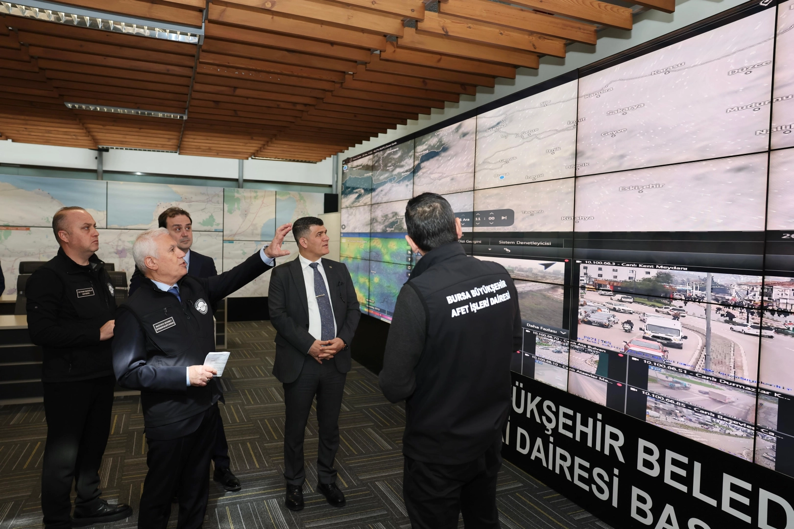 “Bursalılar hiç endişe etmesin”Bursa Büyükşehir Belediye Başkanı Mustafa Bozbey, Afet Koordinasyon Merkezi’ni (AKOM) ziyaret ederek yağış beklentisi ve yapılan hazırlık çalışmaları hakkında bilgi aldı. Büyükşehir ekiplerinin yoğun kar yağışı dahil olmak üzere en nitelikli hizmeti verecek şekilde hazır bulunduğunu belirten Başkan Bozbey, “Ekiplerimiz ve ilçe belediyelerin ekipleri uyum içinde çalışarak çıkabilecek olumsuzlukları en aza indirmek amacıyla sahada olacak. Ayrıca yolda kalan vatandaşlarımız bir telefon aracılığıyla bize ulaşabilir. Onlara hem sıcak yemek desteği, hem de yolda kalma ve benzeri durumlarda teknik müdahale desteği vereceğiz. Arkadaşlarımız her türlü hazırlığı yapmış durumda. Bursalılar hiç endişe etmesin” diye konuştu.