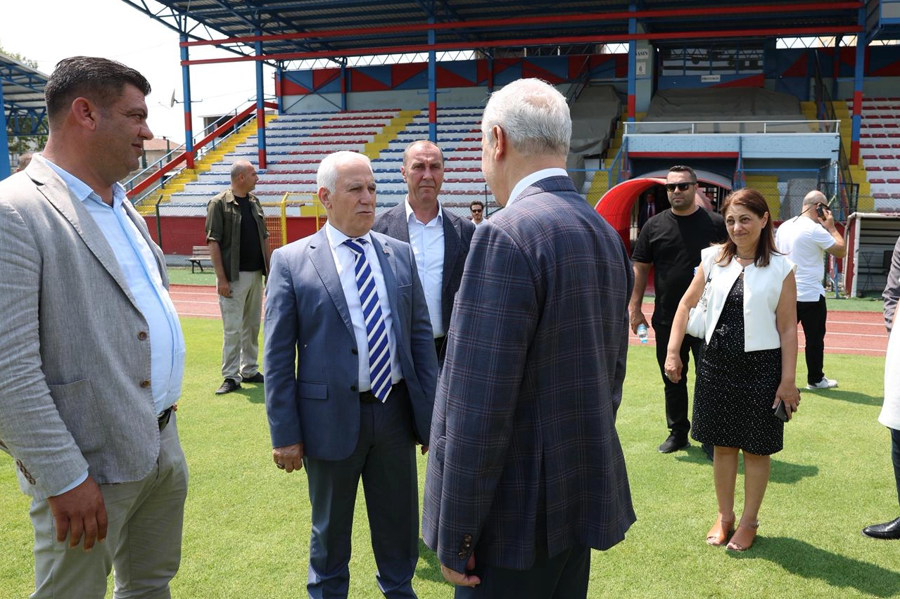 Bursa'nın sporda da marka kent olması için birçok alanda yatırımlarını sürdüren Büyükşehir Belediyesi, ilçelerdeki spor tesislerinde de modernizasyon çalışmalarını tüm hızıyla sürdürüyor. Mustafakemalpaşa İlçe Stadyumu’nu da baştan sona yenileyen Büyükşehir Belediyesi, eski soyunma odalarının inşaat işlerini, elektrik altyapı ve aydınlatma imalatlarını, mekanik sıhhi tesisatı ve vitrifiye değişimlerini elden geçirdi. Çalışmalar kapsamında Türkiye Futbol Federasyonu 3. Lig standartlarına uygun olacak şekilde engelli tribünü, maraton ve misafir tribünleri, taraftar lavaboları, hakem ve gözlemci odası, protokol ve fuaye alanı, sağlık odası ile kantin olarak kullanılmak üzere kabinler yenilendi. Saha genelinde sert zemin uygulaması yapılırken, giriş kapıları, ses sistemi, skorboard ve turnike sistemleri kullanılabilir hale getirildi. Öte yandan Büyükşehir Belediyesi tarafından Şükrü Erdem Spor Kompleksi’ne modern bir yatakhane de kazandırıldı. Bursa Büyükşehir Belediye Başkanı Mustafa Bozbey, beraberindeki Mustafakemalpaşa Belediye Başkanı Şükrü Erdem ve protokol üyeleriyle birlikte stadyum ve spor kompleksini gezerek incelemelerde bulundu. İlçe stadyumunun mekanik, inşaat ve elektrik tesisatlarının Büyükşehir Belediyesi tarafından revize edildiğini söyleyen Başkan Mustafa Bozbey, “Gelen talep üzerine Bursa Büyükşehir Belediyesi olarak çalışmaları tamamlayarak tesisleri hizmete sunduk. Her yönüyle Mustafakemalpaşa’ya yaraşır bir stat ve spor kompleksi haline geldi. Yaklaşık 18 milyon TL harcama yaptık. İlçe halkımıza ve gençlerimize hayırlı olsun” dedi. Mustafakemalpaşa Belediye Başkanı Şükrü Erdem, yenileme taleplerinin Büyükşehir Belediyesi tarafından hızlı bir şekilde karşılandığını belirterek, Başkan Mustafa Bozbey’e teşekkür etti. Çok güzel bir tesise kavuştuklarını belirten Erdem, “Türkiye Futbol Federasyonu kriterlerine göre birinci sınıf stat olarak geçiyor. Uluslararası maçların da burada oynanabileceği anlamına geliyor. Büyük bir kazanç. İlçemize hayırlı olsun” diye konuştu.