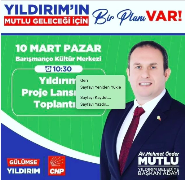 Açıklamasına "İşte tam da burada, bizler Yıldırım için kolları sıvadık. Yıldırım’ın ihtiyaçlarını, sorunlarını sizlerle birlikte masaya yatırdık, sorunlarınıza kulak verdik. Yıldırım’da mutlu bir gelecek inşa edilebilir, yeter ki bizlere güvenin, yeter ki kendi gücünüze güvenin. 22 yıldır Yıldırım’da değişmeyen anlayışı değiştirmek şimdi sizlerin elinde. Yıldırım’ın artık kaybedecek zamanı kalmadı. Yıldırım için hep birlikte çalışacak, hep birlikte üreteceğiz. Yıldırım kazanacak, Yıldırımlılar kazanacak" ifadeleri ile devam eden CHP Yıldırım Adayı Mehmet Önder Mutlu, projelerini ise şöyle sıraladı: