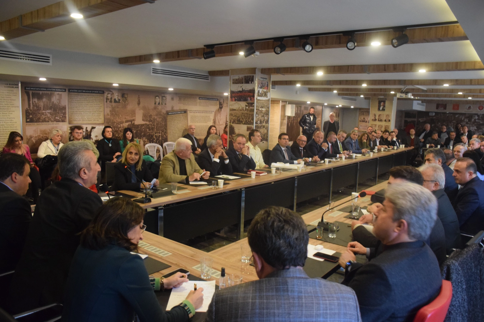 Toplantıda yerel seçimlere yönelik hazırlıklar değerlendirilirken aday adaylarıyla karşılıklı görüş alışverişinde bulundu.