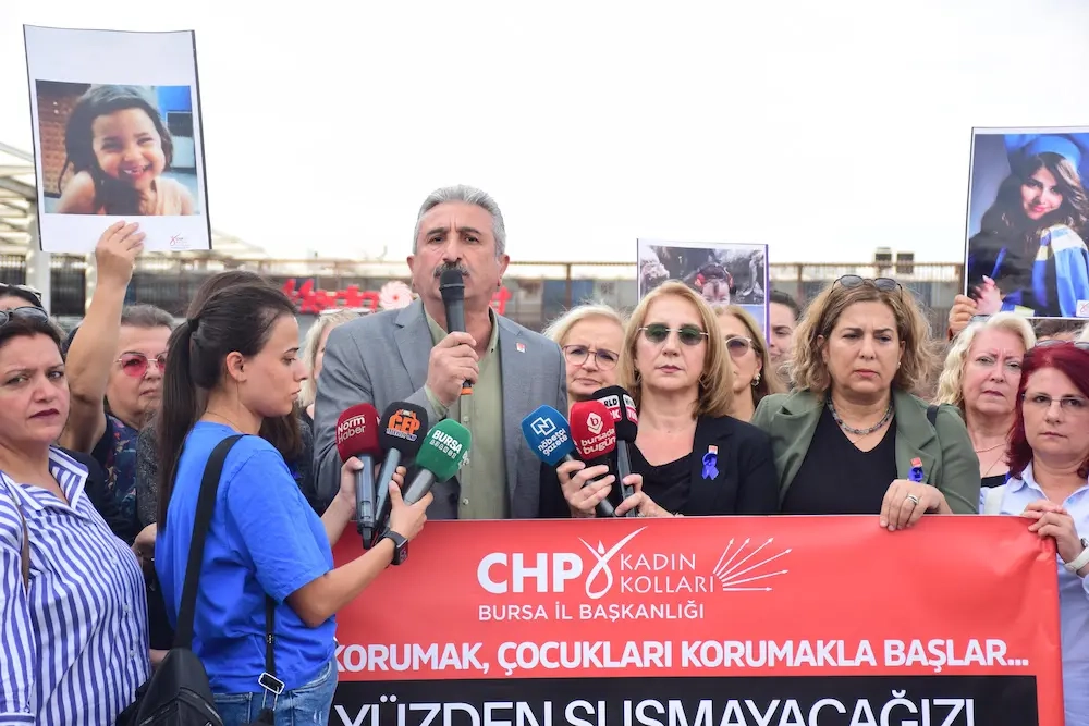 Cumhuriyet Halk Partisi Bursa İl Kadın Kolları Başkanlığı Narin Güran, istismara uğrayarak hayat mücadelesi veren Sıla Bebek, katledilen kadınlar ve çocuklar için Kent Meydanı’nda basın açıklaması düzenledi.
