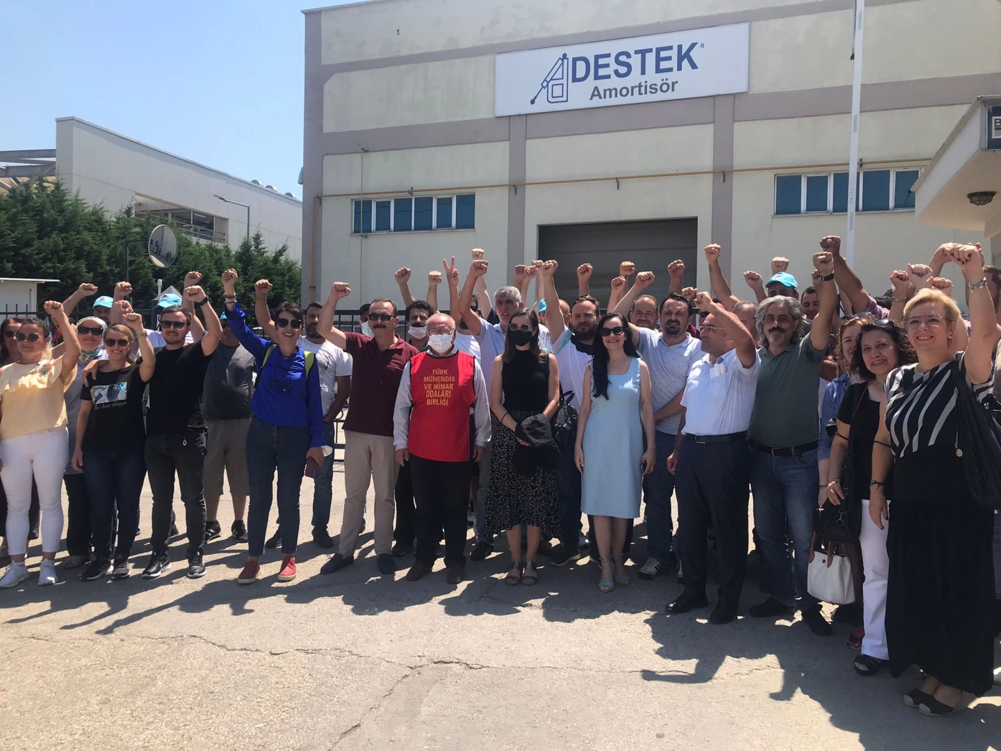 "Cinsiyete dayalı ücret adaletsizliğinin örneği"Ülke genelinde çalışanlar arasındaki cinsiyete dayalı ücret eşitsizliğinin bir örneğinin de Destek Otomotiv fabrikasında yaşandığını belirten Türk Metal Şube Başkanı Selda Tekman, "Bu fabrikada 18,19, 20 yıldır çalışan kadın işçiler sadece asgari ücret alıyor. Oysa ki yanına çalışan erkek işçinin ücreti biraz daha fazla. Burada gerçekten bir adaletsizlik söz konusu. Şu kavurucu sıcağın altında hak mücadelelerini sürdüren işçilerin her zaman yanındayız." şeklinde konuştu.