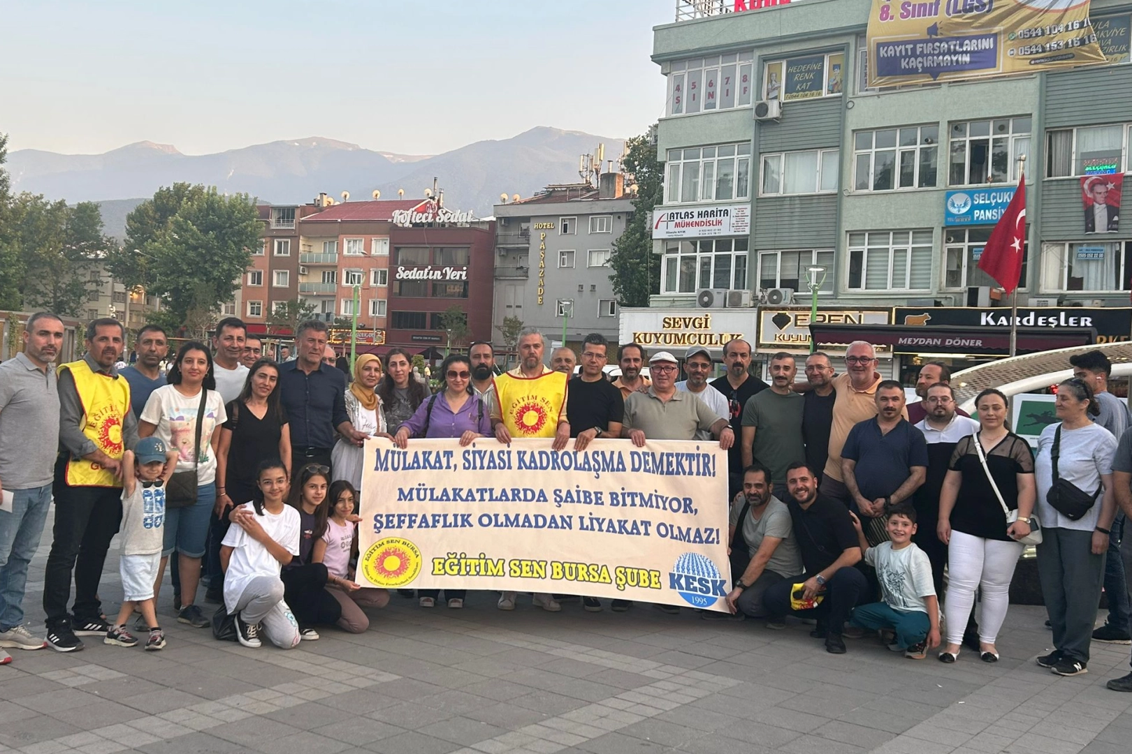 Torpil ve kayırmacılık anlamına gelen mülakat uygulaması nedeniyle eğitim emekçileri mağdur edilmeye devam ediyor diyen Şahin, “Bursa’da 2025 yılı eğitim kurumlarına ilk defa yönetici görevlendirme, müdür ve müdür yardımcılığı sözlü mülakat sınavlarının sonuçları açıklandı. Mülakat bir kez daha birilerinin önünü açmak için kullanıldı. Deniz Tuncay mağdur edildi. Yazılı sınavda önüne geçemedikleri adayın mülakat yoluyla önünü kestiler. Mülakat sistemi derhal kaldırılmalı; idareci atamaları sadece yazılı sınav sonuçlarına göre, liyakat ve eşitlik esas alınarak yapılmalıdır. Tüm sonuçlar çarşaf liste halinde kamuoyuna açıklanmalı; adayların yazılı ve sözlü puanları ile başarı sıralamaları şeffaf biçimde paylaşılmalıdır. Yargı kararıyla görevine iade edilen eğitim emekçilerinin yaşadığı hak kayıpları giderilmeli, bu kişilere yönelik ayrımcı uygulamalara son verilmelidir. Bu haksız ve hukuksuz uygulamalara karşı mücadelemizi sürdüreceğiz. Geri adım atmayacağız. Hakkımızı aramaya devam edeceğiz” dedi.