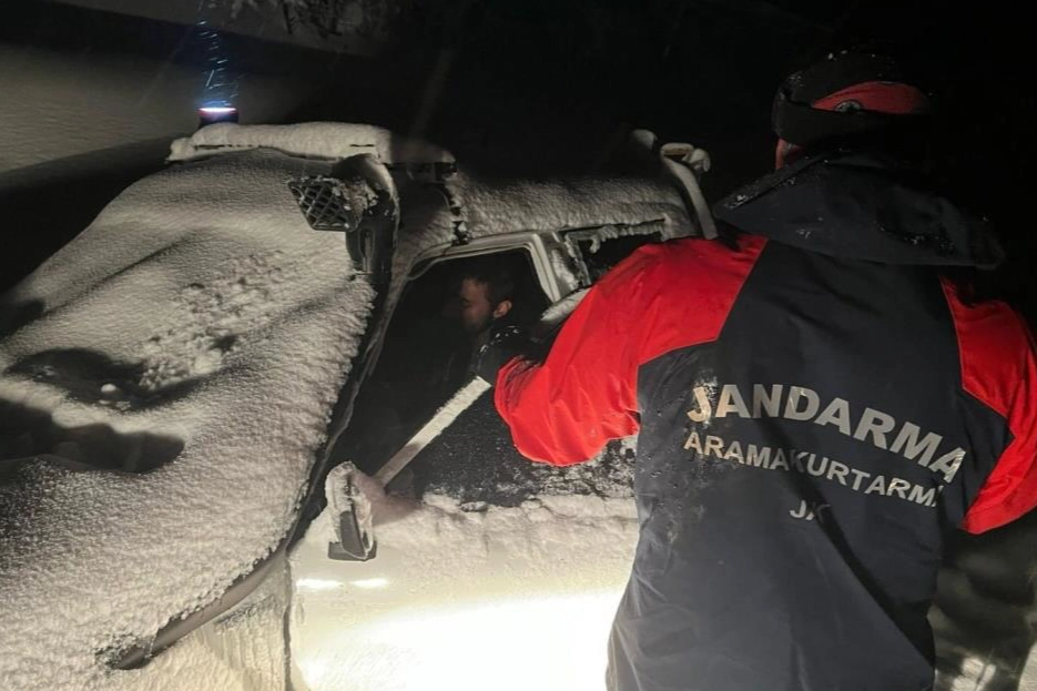 1 adet kar üstü motorlu JAK timi, 2 Jandarma Asayiş timi, UMKE ve AFAD personelleri ile ormanlık alanda çalışma yapan ekipler, mahsur kalan Arda P. ile Erol B. donmak üzereyken kurtardı. Kurtarma anı ise saniye saniye GoPro kamerasına yansıdı.