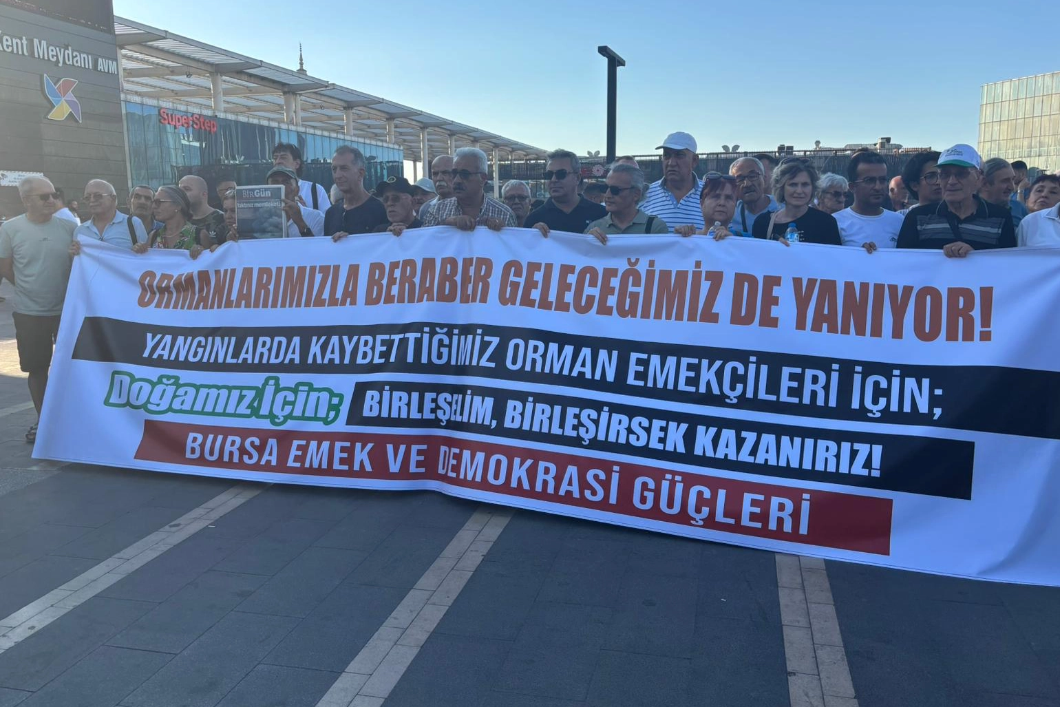 Bursa Emek ve Demokrasi Güçlerİ, Eskişehir’in Seyitgazi ilçesinde başlayıp Afyonkarahisar sınırlarına kadar yayılan orman yangınında hayatını kaybeden 5 orman işçisi ve 5 AKUT gönüllüsü için Kent Meydanı'nda basın açıklaması düzenledi.