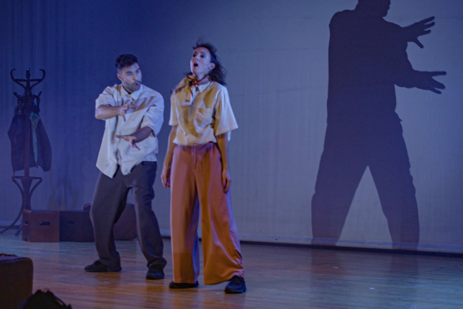 Hong Kong ve Florida’nın ardından Bursa’daGölgelerin içine yerleştirdikleri zözsüz oyunlarıyla video ve fiziksel tiyatroyu birleştirerek alışılmışın dışında bir gösteri yapan Fransız ikili Claire&Antho, yeni oyunları ‘Souvenirs’ın dördüncü gösterimini Hong Kong ve Florida’nın ardından Bursa’da yaptı. Dansları ve sahne dilleriyle Bursa seyircisini ilk dakikalardan itibaren etkisi altına alan ikili, fiziksel tiyatro, dans, gölge oyunları ve video kullanımını sahne üstünde özgün bir şekilde harmanlarken, izleyici tarafından uzun süre alkışlandı.