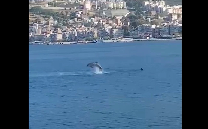 Yürüyüş bandına yakın mesafelere kadar gelen 2 yunus balığı suda uzun süre oyunlar oynadı. Zaman zaman ses çıkartan ve birbirleri ile oynayan yunus balıkları bir süre sonra körfezin serin sularında gözden kayboldular.