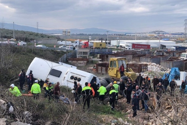 Olay, Bursa'nın Gemlik ilçesi Serbest Bölge girişinde meydana geldi. Edinilen bilgiye göre, 41 TK 262 plakalı tır, Gemlik Serbest Bölgeye girişinde hızını ayarlayamayınca 16 S 7137 plakalı Temsa marka servis otobüsüne arkadan çarptı. İşçileri topladıktan sonra fabrikaya doğru yola çıkan otobüs şoförü, çarpmanın etkisiyle direksiyon hakimiyetini kaybetti. Yaklaşık 20 metre şarampole yuvarlanan otobüste, can pazarı yaşandı. Vatandaşların ihbarıyla çok sayıda ambulans ve kurtarma ekibi bölgeye sevk edildi. Yaralılar, vatandaşların da yardımıyla otobüsten çıkarıldı. Yol, kaza sebebiyle tek şeritten sağlanırken, kazayla ilgili tahkikat devam ediyor.