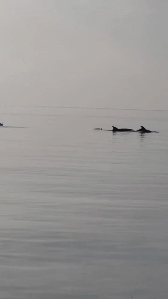Gemlik Narlı sahilinde ortaya çıkan yunus balıkları görsel şölen oluşturdu. Bir süre suyun üstüne zıplayan yunus balıkları, balıkçı vatandaşlar tarafından kaydedildi. Sevimli yunuslar bir süre sonra gözden kayboldu.