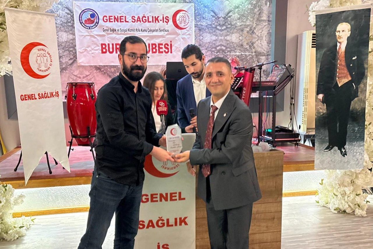 Genel Sağlık İş Sendikası Genel Merkez Yöneticisi Erman Açıkgöz ise, "Genel Sağlık İş Bursa şube ailem 12 yıldır aranızdayım. Omuz omuza yol yürüdüğüm, güç verenler sizlerle Bursa Şube 12 yıl boyunca sağlıkta eşitliği, halkın nitelikli bir sağlık hizmetine ulaşabilmesi için mücadele etti" ifadelerini kullandı.