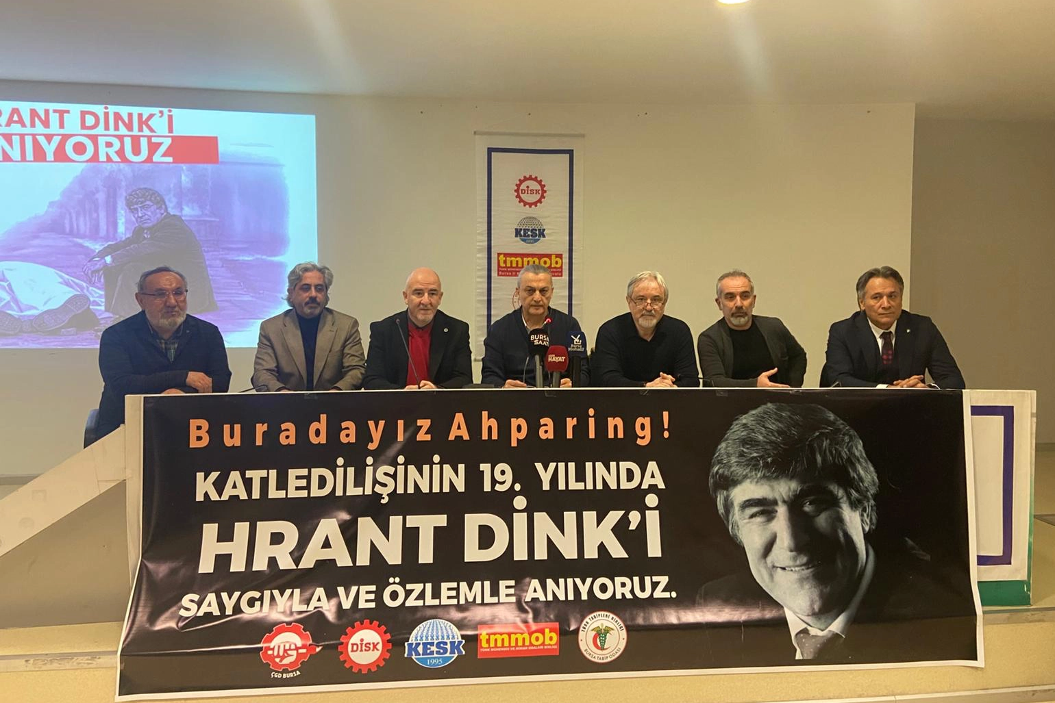 19 Ocak 2007’de Agos gazetesinin önünde vurularak öldürülen Agos gazetesi Genel Yayın Yönetmeni Gazeteci Hrant Dink, Bursa'da DİSK, KESK, TMMOB, BTO ve Çağdaş Gazeteciler Derneği Bursa Şubesi tarafından anıldı.