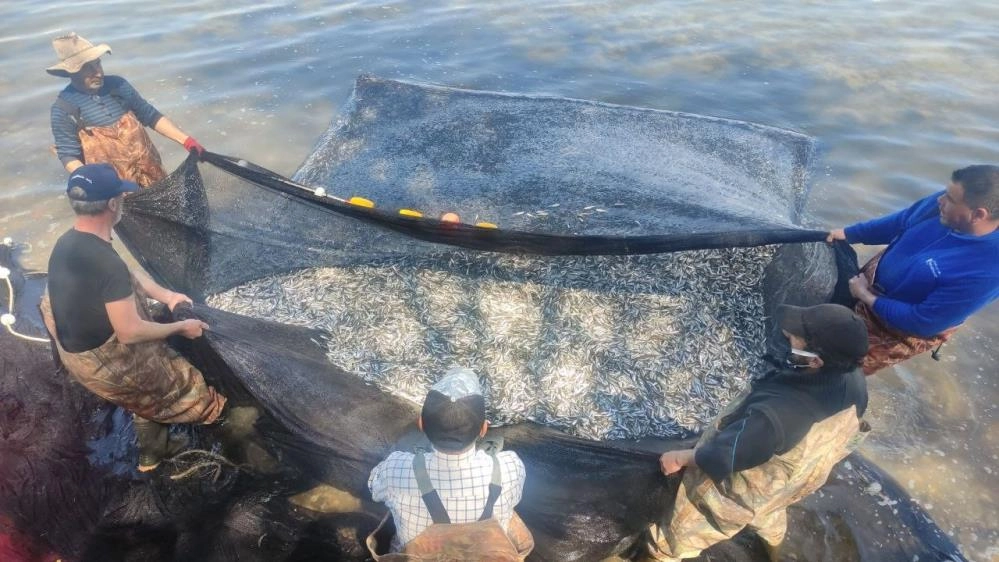 Bursa'nın İznik Gölü’nde 1 günde 15 ton gümüş balığı tutan balıkçıların yüzü gülüyor.