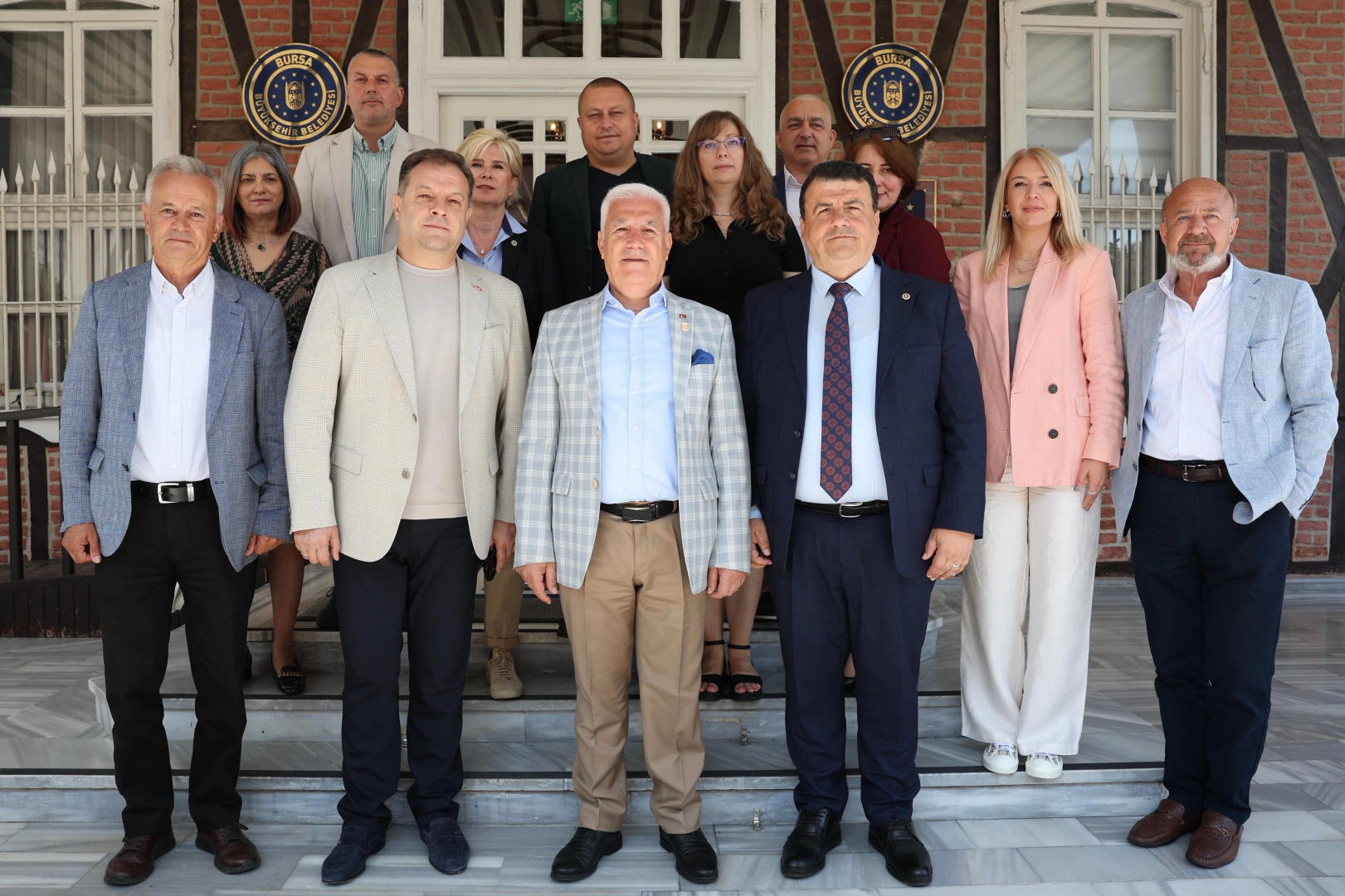 Bulgaristan’ın Tırnova Belediye Başkanı Daniel Dimitrov Panov, kardeş şehir ilişkileri kapsamında Bursa’ya gelerek Büyükşehir Belediye Başkanı Mustafa Bozbey’i Tarihi Belediye Binasında ziyaret etti. CHP Bursa Milletvekili Hasan Öztürk'ün de yer aldığı buluşmada, iki kent arasındaki dostane ilişkilerin geliştirilmesi, kültürel ve ekonomik iş birliğinin artırılması gibi konular ele alındı. Bursa’nın 3.3 milyon nüfusa sahip olduğunu hatırlatan Başkan Mustafa Bozbey, kent hakkında misafirlere bilgi verdi. Sanayisi, tarihi, kültürel değerleri ve tarımıyla öne çıkan Bursa’nın çok fazla doğal zenginliğe sahip olduğunu belirten Başkan Bozbey, iki kent arasındaki ilişkilerin projeler geliştirilerek artırılabileceğini ifade etti. Tırnova Belediye Başkanı Daniel Dimitrov Panov, iki kent arasındaki kardeş ilişkilerinin 8 yıl önce başladığını ve bu bağı güçlendirmek istediklerini dile getirdi. Görüşmenin ardından Başkan Mustafa Bozbey tarafından Panov’a günün anısına hediye takdim edildi.