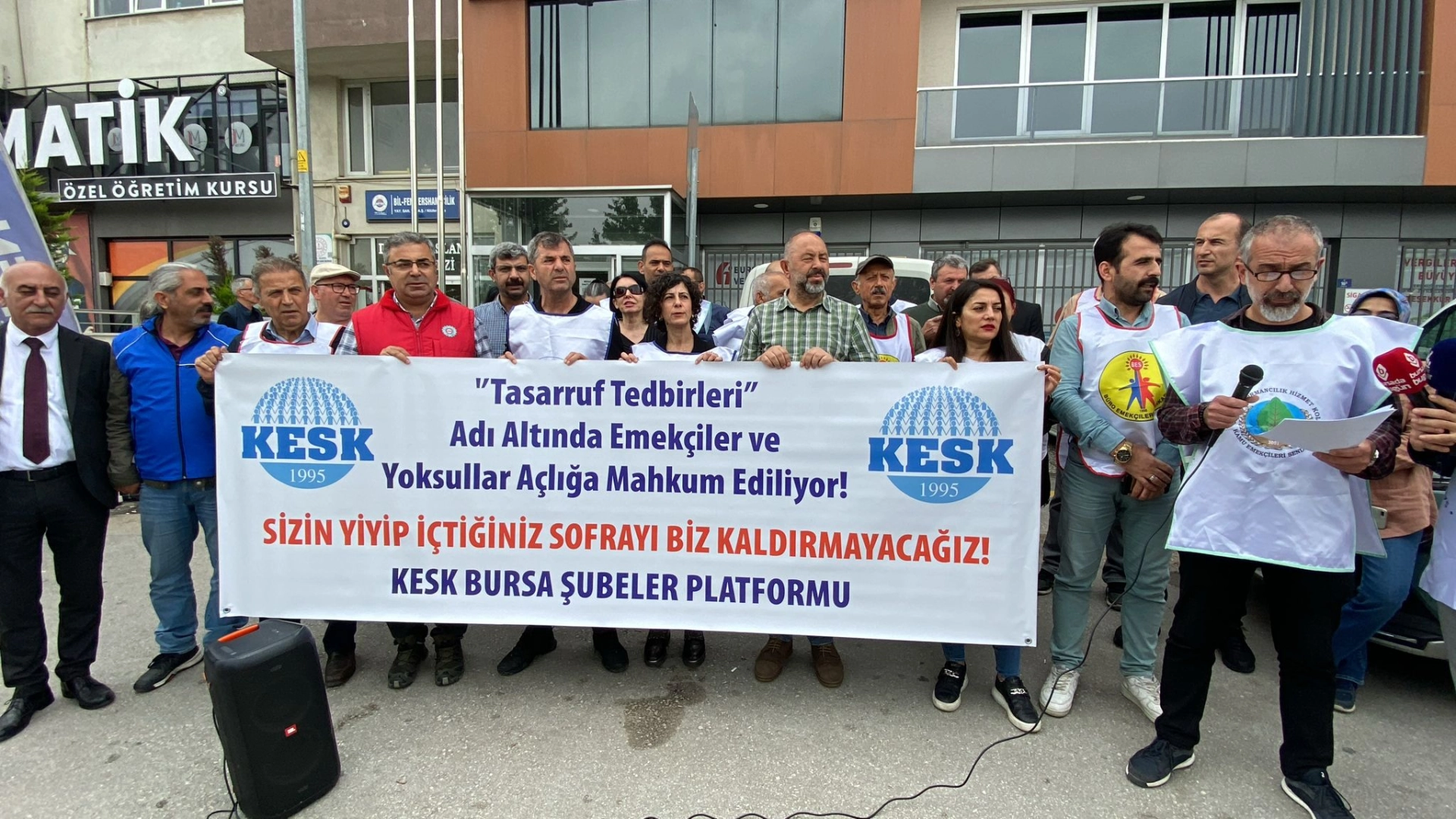 Kamu Emekçileri Sendikaları Konfederasyonu (KESK) Bursa Şubeler Platformu "Kamuda Tasarruf" paketine ilişki basın açıklaması yaparak, ‘Emekçiler tasarruf paketi altında yürütülen saldırı politikalarına sessiz kalmayacak’ dedi.