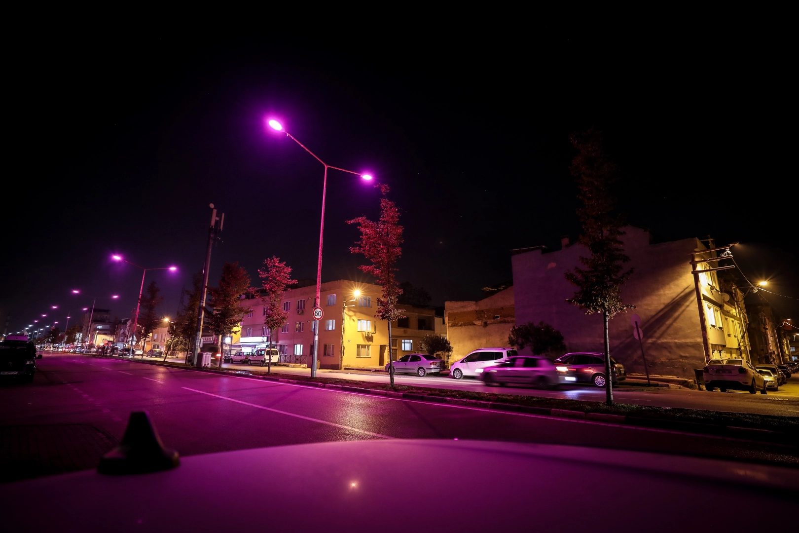 UEDAŞ, meme kanserine dikkat çekmek için Bursa’daki sokakları pembe lambalarla aydınlattı.
