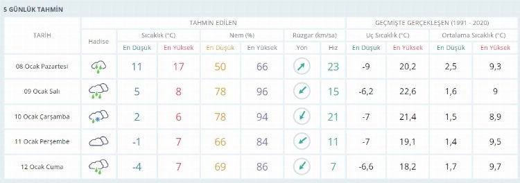 Bursa için 5 günlük hava durumu tahmini şöyle: