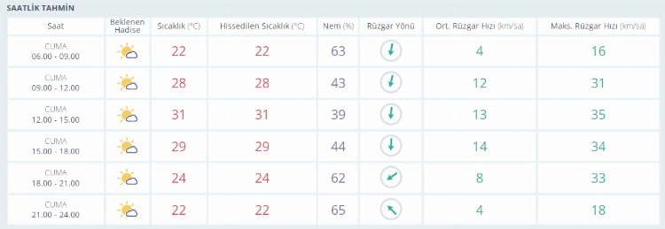 Bursa'nın saatlik hava durumu tahmini ise şöyle:Haber Merkezi