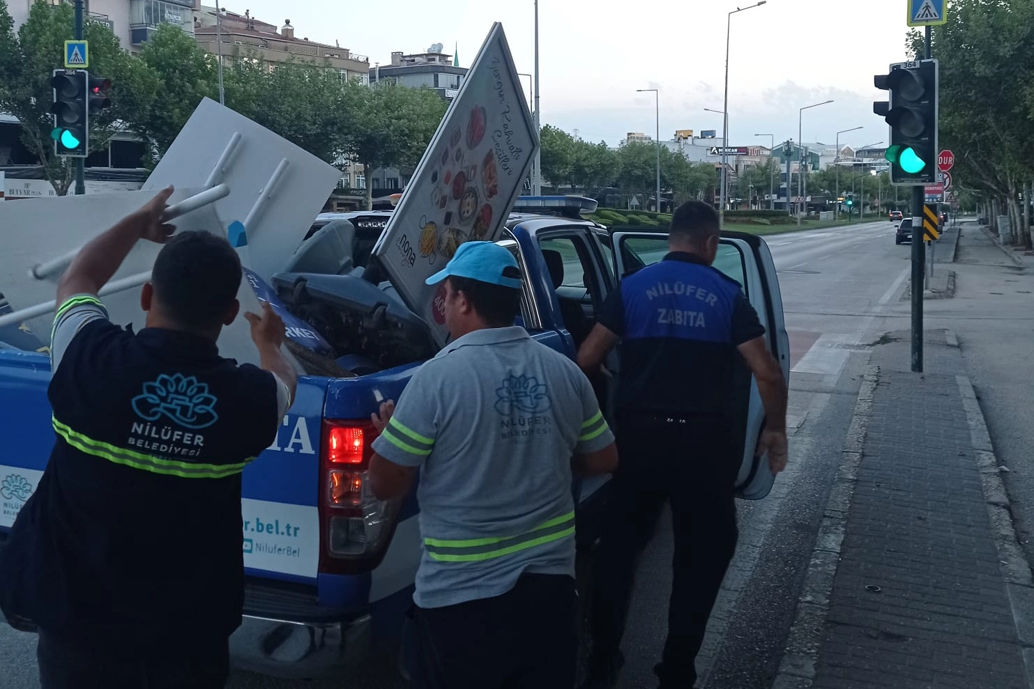 Nilüfer Belediyesi Zabıta ekipleri, kent estetiğini bozan ve yaya güvenliğini tehdit eden unsurlara yönelik denetimlerini sürdürüyor.