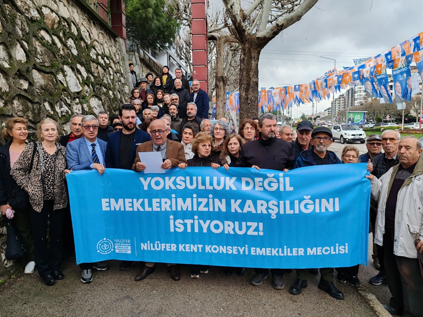 Nilüfer Kent Konseyi önünde yapılan açıklamada, "Yıllardır bu ülkeye emek vermiş, alın teriyle katkıda bulunmuş emekliler olarak, yaşam standartlarımızın her geçen gün düşmesine ve yoksulluğa mahkûm edilmemize karşı sesimizi yükseltmek istiyoruz. Ülkemiz, son yıllarda görülmemiş bir enflasyon sarmalıyla boğuşuyor. Yüzde 60'ı aşan enflasyon karşısında yapılan zamlar, alım gücümüzü her geçen gün daha da düşürüyor. Dünya genelinde emeklilerin gelir düzeyi ve yaşam kalitesini inceleyen araştırmalarda Türkiye son sıralarda yer alıyor” denildi.