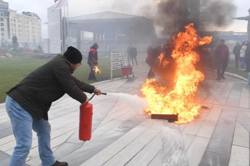Afet İşleri Müdürlüğü personelinin yönlendirmesiyle Osmangazi Belediyesi merkez binası, 117 saniye gibi kısa sürede tümüyle tahliye edildi. Belediye binasının önünde toplanan personele Afet İşleri Müdürlüğü ekipleri, deprem ve yangın anında neler yapması gerektiğini uygulamalı olarak gösterdi. Ardından yakılan ateşe, doğru şekilde yangın söndürme tüpüyle nasıl müdahale edilmesi gerektiği anlatıldı. Yıllık olağan tatbikatlarını yaptıklarını ifade eden Osmangazi Belediyesi Afet İşleri Müdürlüğü Önlem Müdahale Sorumlusu Hakan Buladı, “Bugün 2024 yılının tatbikatını tamamlamış bulunmaktayız. Yangın söndürme tüpünün nasıl kullanılacağını, yangın alarmı sırasında neler yapılması gerektiğini ve doğru yangın söndürme yöntemlerini öğrettik. Depremde ilk yapılması gereken bulunduğumuz ortamı terk etmemek çök, kapan ve tutun hareketini yapmak, bununla birlikte bir istisnası var şayet binanın çıkış noktasına yakınsak hızlı bir şekilde terk etmesi gerekiyor” dedi.