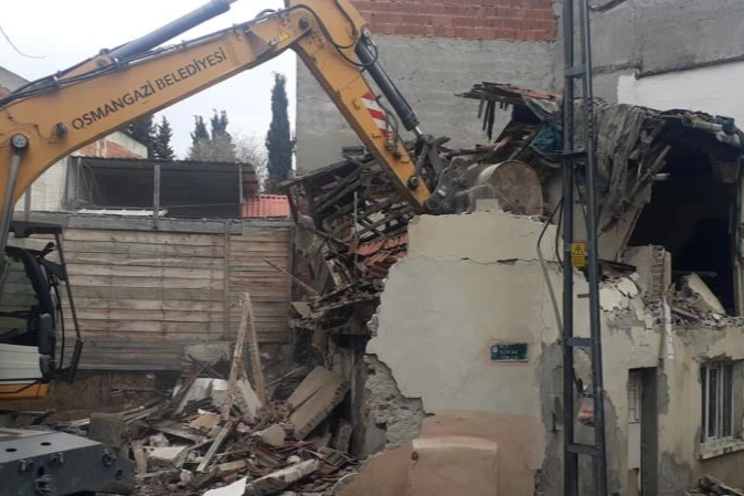 Osmangazi Belediyesi, halkın can ve mal güvenliğini tehdit etmesinin yanı sıra madde bağımlılarının mesken tutması nedeniyle de yoğun şikayetlere konu olan metruk binaların yıkımını sürdürüyor. Mahallelerde yaşayan halkı oldukça tedirgin eden metruk binalar, Yapı Kontrol Müdürlüğü ekipleri tarafından durum tespiti yapılıp, yasal işlemlerinin tamamlanmasının ardından yıkılıyor. Vatandaşlardan gelen talep ve şikayetleri dikkate alan belediye ekipleri, İvazpaşa Mahallesi’nde yer alan metruk binayı yıkmak için harekete geçti. Emniyet ve sağlık açısından risk oluşturan metruk bina, iş makinesi ile yıkıldı. Yıkımın ardından ortaya çıkan molozlar, belediye ekipleri tarafından kamyonlara yüklenerek yıkım alanı temizlendi.