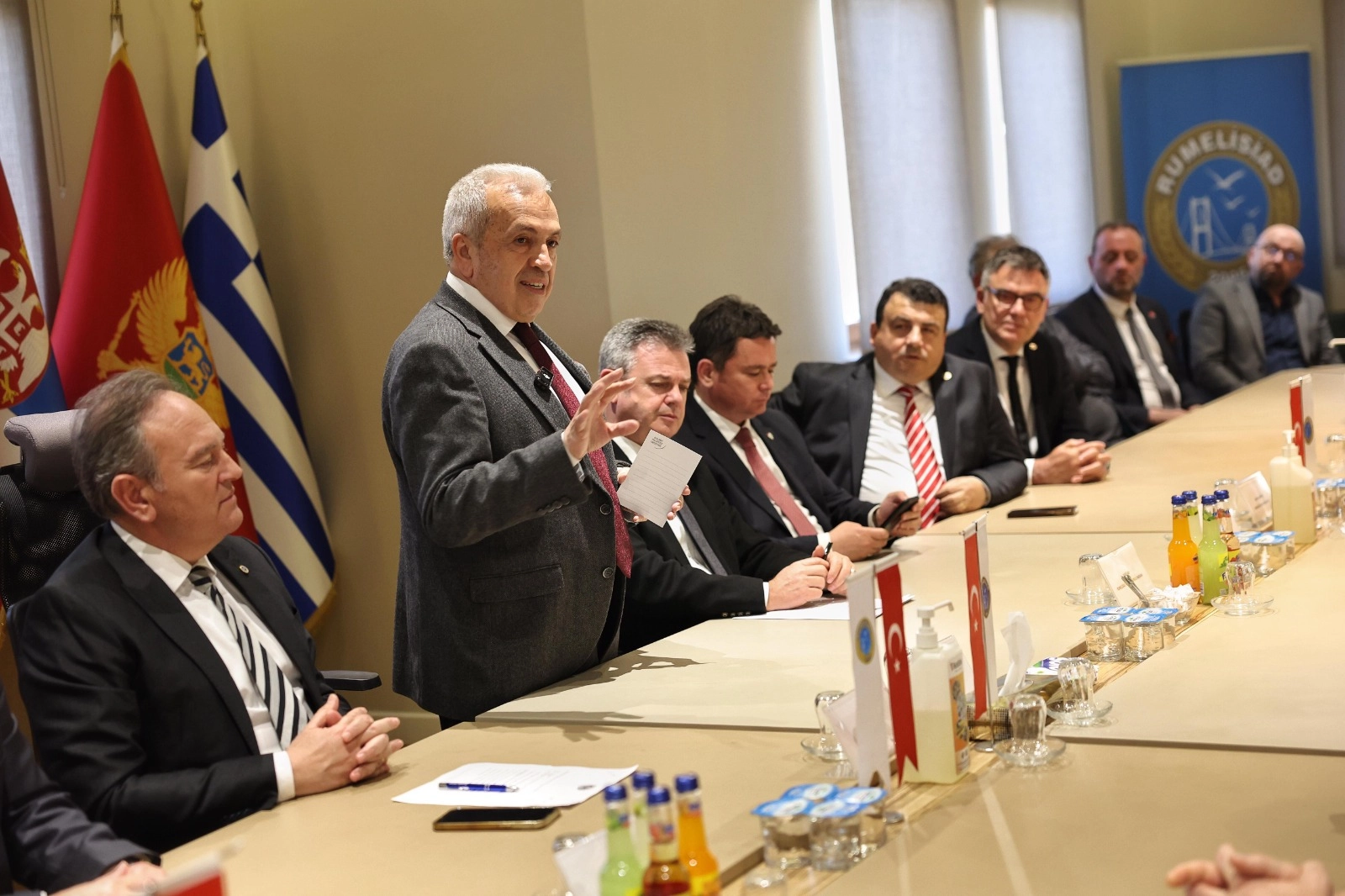 CHP Bursa Milletvekili Hasan Öztürk ve CHP Osmangazi Belediye Başkan Adayı Erkan Aydın ile birlikte RUMELİSİAD’ı dernek binasında ziyaret eden Nilüfer Belediye Başkan Adayı Şadi Özdemir’i, Başkan Zarif Alp ve Yönetim Kurulu üyeleri karşıladı.
