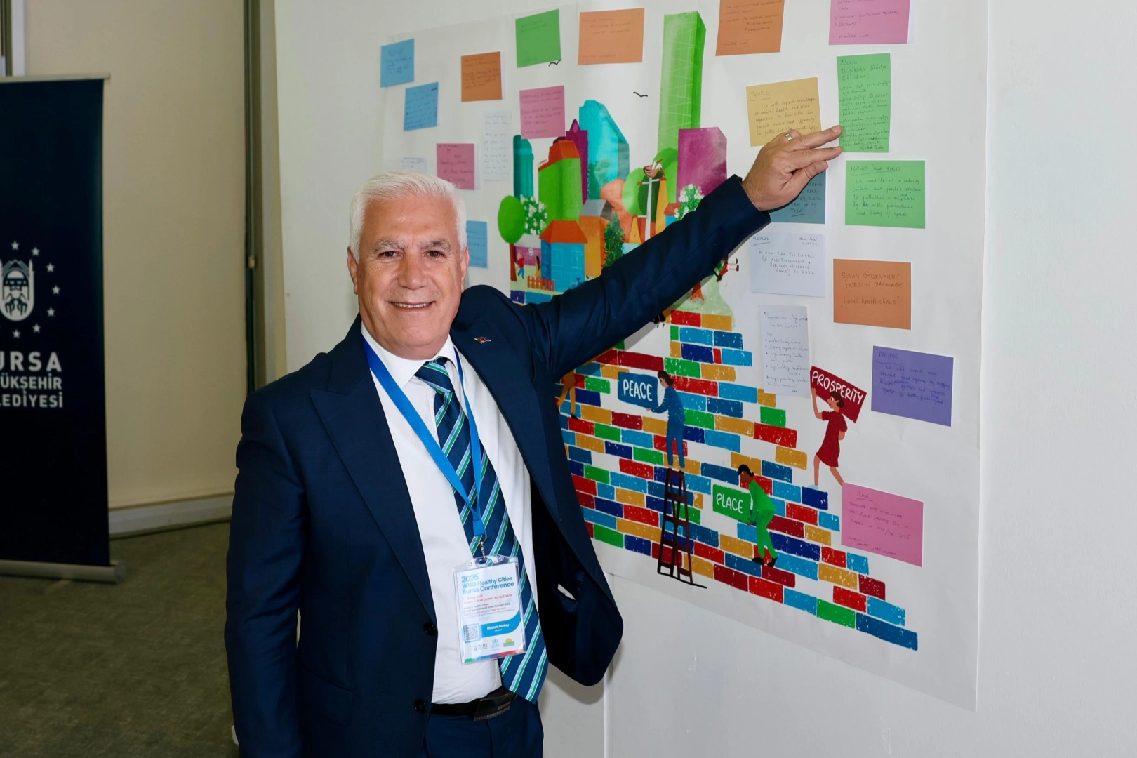 Toplantıya katılan yerel yönetim temsilcileri de kendi kentlerine dair proje ve iyi niyet mesajlarını “Bursa Taahhüt Duvarı”na yapıştırarak ortak amaç ve sorumluluklara dikkat çekti.