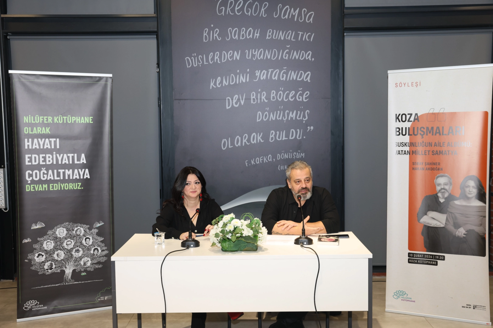 Koza Kütüphane’de gerçekleşen ve Hakan Akdoğan’ın moderatörlüğünü üstlendiği söyleşinin bu ayki konuğu çağdaş Türk edebiyatının sevilen kalemlerinden Seray Şahiner oldu. “Suskunluğun Aile Albümü: Vatan Millet Samatya” başlıklı etkinlikte Şahiner, edebiyata bakış açısını, yazarlık serüvenini ve son romanının ortaya çıkış hikayesini anlattı. Söyleşiyi, Nilüfer Belediye Meclis Üyesi Furkan Yavuz ve çok sayıda edebiyatsever ilgiyle takip etti.