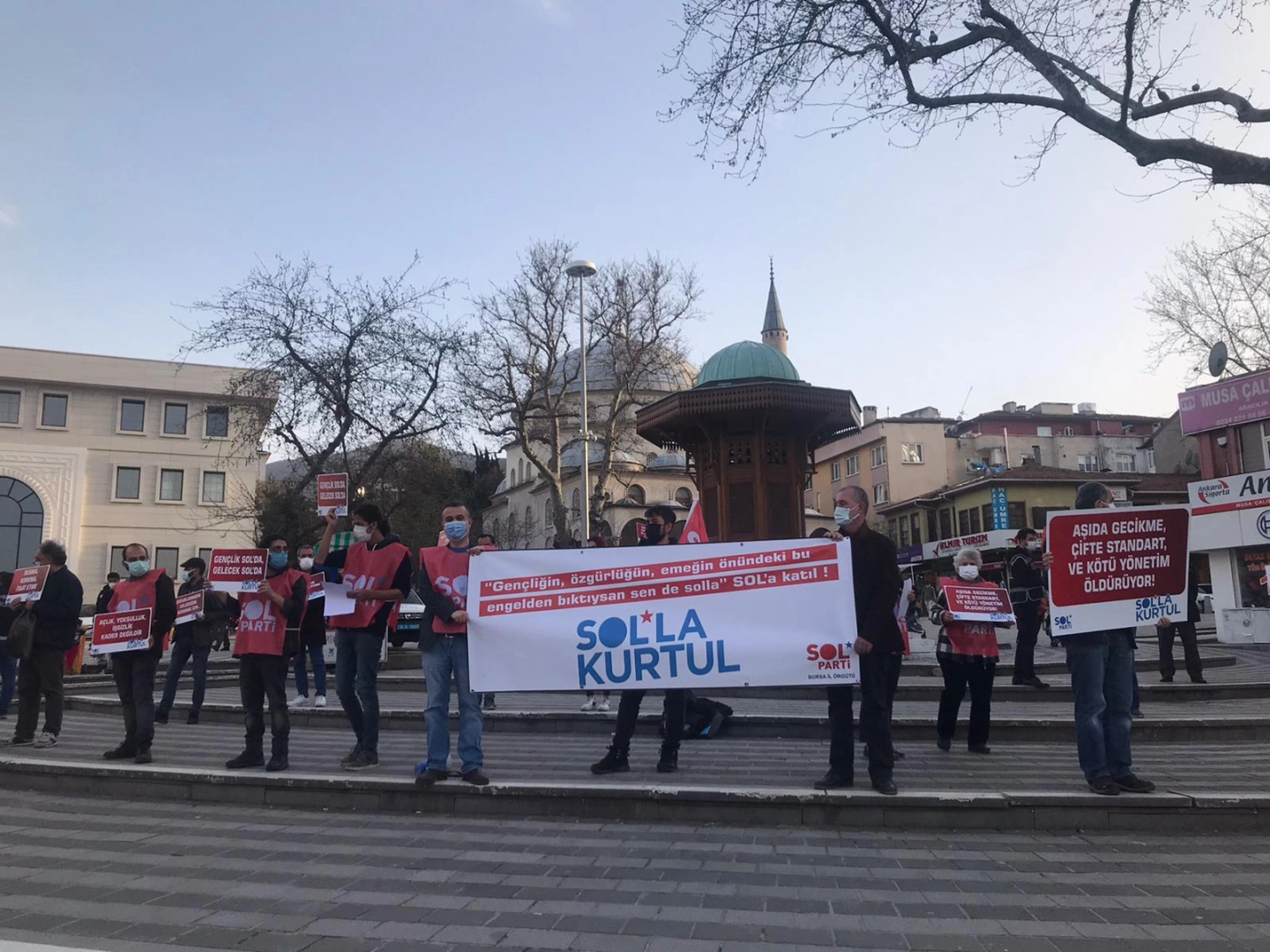 SOL Parti, Şehreküstü Meydanı’ında basın açıklaması gerçekleştirdi. Açıklamada, gençlik, özgürlük ve emek önündeki engelin AKP olduğuna dikkati çeken SOL Parti, “Gençliğin, özgürlüğün, emeğin önündeki bu engelden bıktıysan sen de solla” çağrısında bulundu.