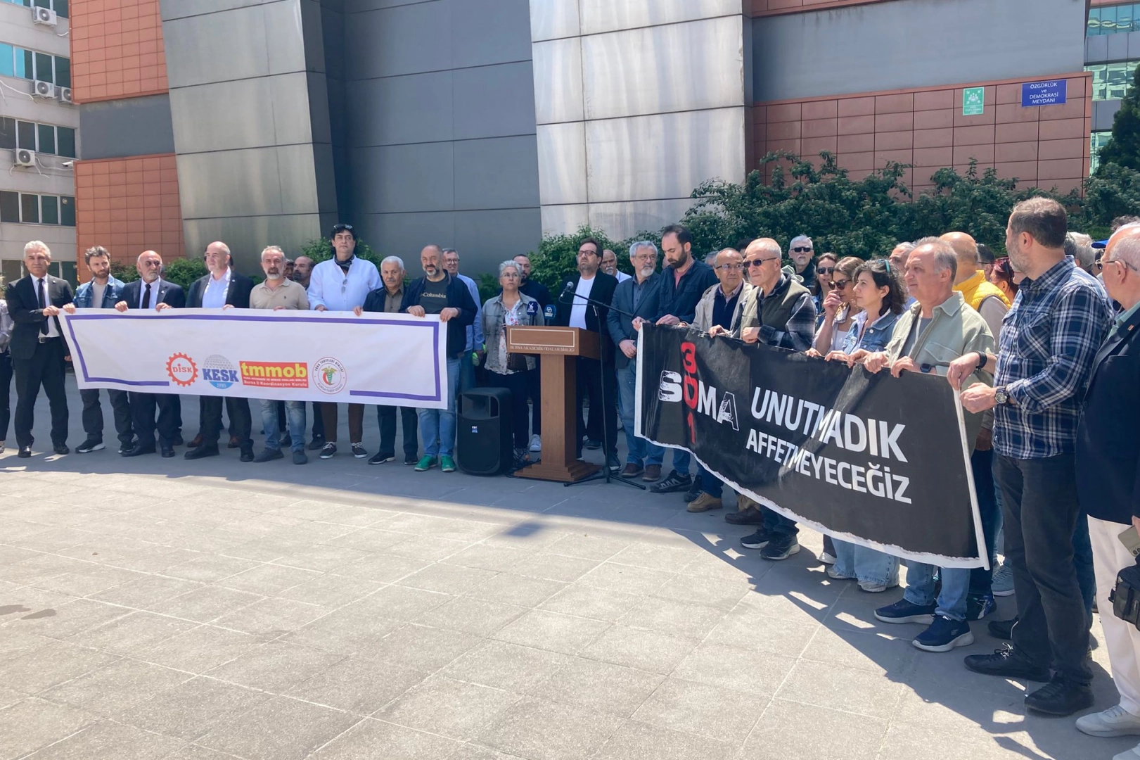 BAOB Özgürlük ve Demokrasi Meydanında yapılan açıklmayı Maden Mühendisleri Odası Bursa Şube Başkanı Adnan Tepeuğur okudu.