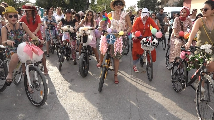 Süslü Kadınlar Bisiklet Turu, 10. yılında yine renkli görüntülere sahne oldu. Rengarenk kıyafetleriyle süslü bisikletleriyle bir araya gelen kadınlar, topuklu ayakkabılarıyla pedal çevirdi.