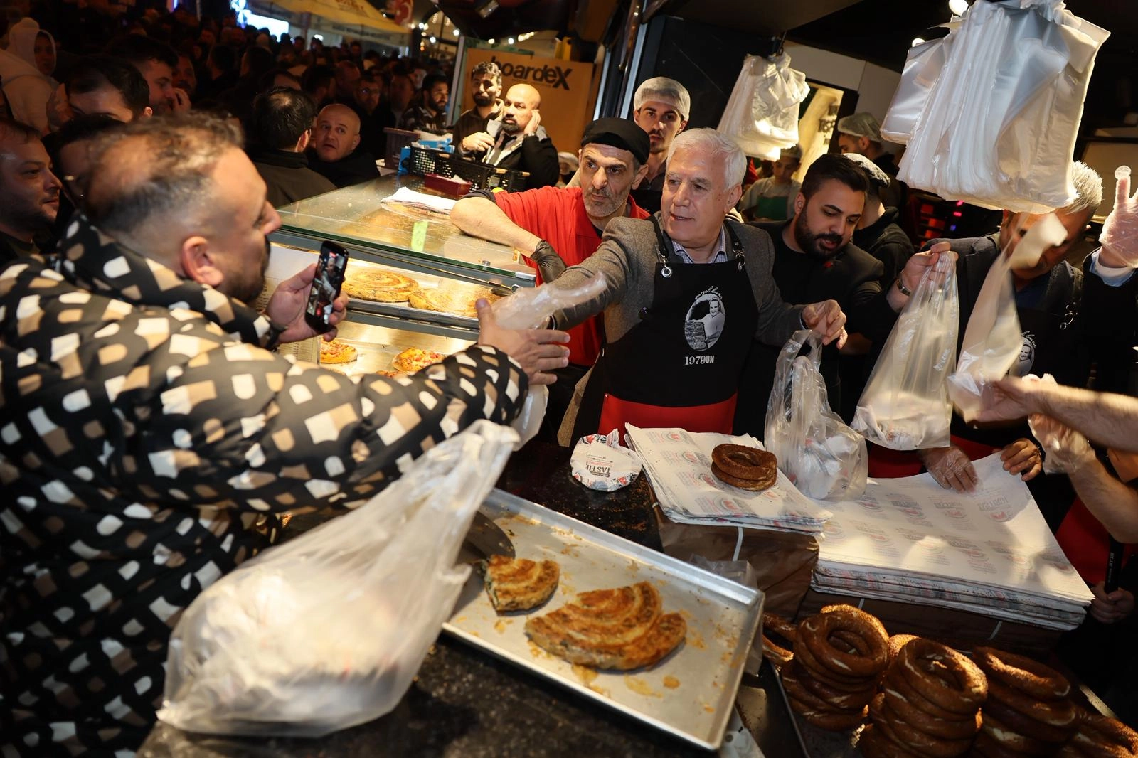Bursa Büyükşehir Belediye Başkanı Mustafa Bozbey’in sosyal medyadan yaptığı "Sahurda Abdal Meydanı’nda Buluşuyoruz” paylaşımıyla yüzlerce Bursalı Abdal Meydanı'ndaki tarihi fırının önüne geldi. Gençler tarafından meşalelerle karşılanan Başkan Mustafa Bozbey, vatandaşlarla sohbet edip bol bol hatıra fotoğrafı çektirdi. Daha sonra önlüğü giyerek tezgahın başına geçen Başkan Bozbey, meydanı dolduranlara tahanlı pide, börek ve simit ikram etti. Sahurda meydanı dolduran herkese teşekkür eden Başkan Mustafa Bozbey, Ramazan’ın paylaşma ve dayanışma ayı olduğunu hatırlatarak Bursa Büyükşehir Belediyesi’nin Türkiye’ye örnek olacak etkinlikler düzenlediğini dile getirdi. Her gün farklı bir ilçede düzenledikleri iftar programıyla kardeşlik sofrası kurduklarını anlatan Başkan Bozbey, “14 farklı noktada iftara yetişemeyenlere iftariyelikler dağıtıyoruz. Ramazan ayının manevi iklimini en güzel şekilde yaşıyoruz. Ramazan ayı vesilesiyle tüm savaşların son bulması, insanların ölmemesi için dua ediyoruz. Tüm Bursalıların Kadir Gecesini ve Ramazan Bayramını tebrik ediyorum” dedi. Başkan Mustafa Bozbey, sahur programının ardından CHP Bursa İl Başkanı Nihat Yeşiltaş, ilçe başkanları ve meclis üyeleriyle birlikte esnafı da ziyaret ederek hayırlı işler diledi.
