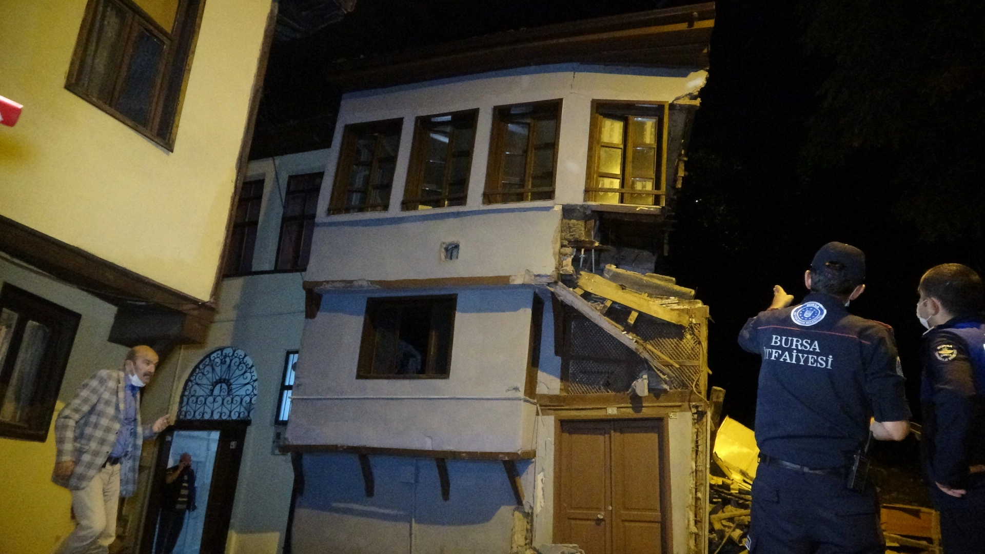 Olay saat gece 00.00 sıralarında Kuruçeşme Mahallesi, Yahşibey caddesinde meydana geldi. Edinilen bilgiye göre, binanın 200 yıllık olduğu belirtilen ve geçmişi Yunanlara dayanan kullanılmayan tarihi ahşap binada sarsıntı yaşandı. Sarsıntının yaşanmasıyla 2 katlı kullanılmayan ahşap binanın çöktüğünü gören vatandaşlar itfaiyeye haber verdi. Gelen ekiplerce yapılan incelemede kullanılmadığı anlaşılan binanın çökmesi sonucu şans eseri yaralanan olmadığı belirlendi.