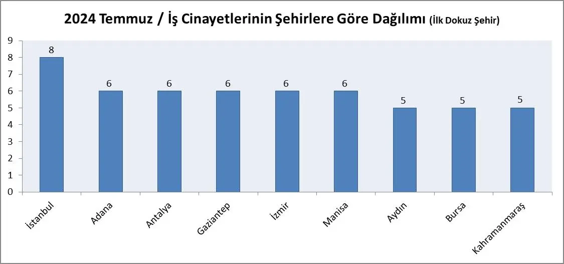 İSİG verilerine göre, Temmuz ayında 144 işçi çalışırken hayatını kaybetti. Raporda Temmuz ayında Bursa’da 6 işçinin hayatını kaybettiği de yer aldı.