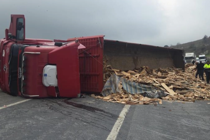 Kaza, Yalova-Bursa kara yolu Süpürgelik mevkiinde meydana geldi. Yalova istikametinden Bursa istikametine seyreden İbrahim Taşcan (40) yönetimindeki 16 Y 0017 plakalı tahta yüklü tır, bilinmeyen bir nedenle kontrolden çıkıp devrilerek sürüklendi. Kazada sürücü hafif yaralanırken, tırın kasasındaki tonlarca tahta yola saçıldı. Yolu tamamen kapatan kaza nedeniyle Yalova-Bursa yolunda trafik durdu.