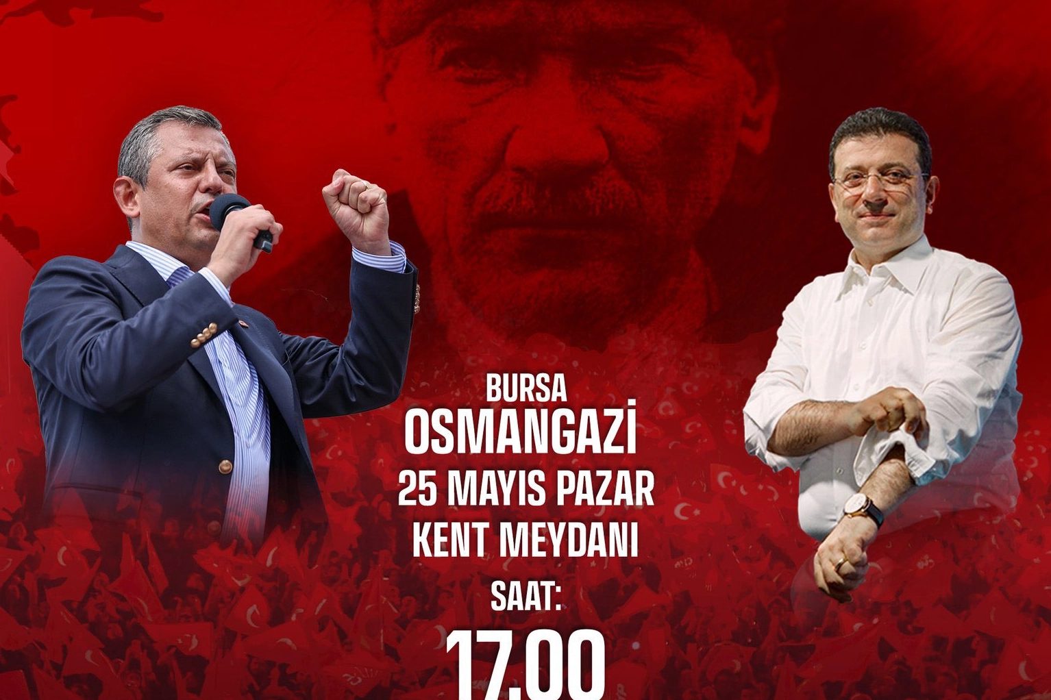 25 Mayıs Pazar günü Bursa’da yüzbinlerle birlikte gerçekleştireceğimiz mitingimizde demokrasiye sahip çıkma irademizi göstereceğiz ve birlikte daha aydınlık bir Türkiye için sesimizi yükselteceğiz.”