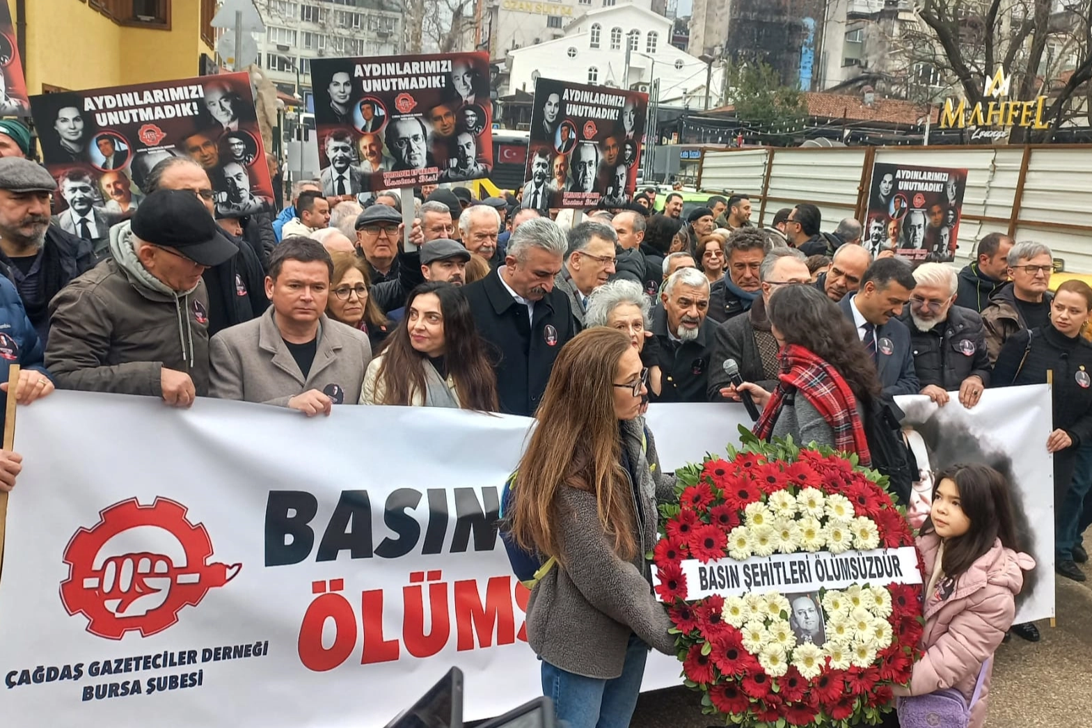 Çavuşoğlu: "O kalem yolumuzu aydınlatmaya devam ediyor"Törende konuşan ÇGD Bursa Şube Başkanı Tayfun Çavuşoğlu, Uğur Mumcu’nun gazetecilik mirasına ve vatan sevgisine vurgu yaptı. Çavuşoğlu, konuşmasında şu ifadelere yer verdi: