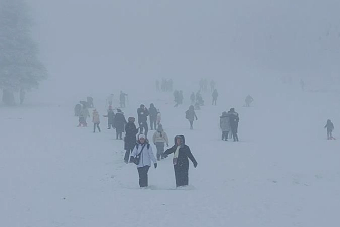 Aracında kış lastiği ve zincir olmayan vatandaş ise "Kar yağışı sebebiyle çıkamadık. Geri döndük şimdi lastiği takıp çıkacağız" dedi. Pistlerdeki kar kalınlığı kayak yapmaya elverişli hale gelirken, günübirlikçiler kızak kiralayıp keyif yaptı. Telesiyejle büyük zirveye çıkmak isteyenler ise uzun kuyruklar oluşturdular.
