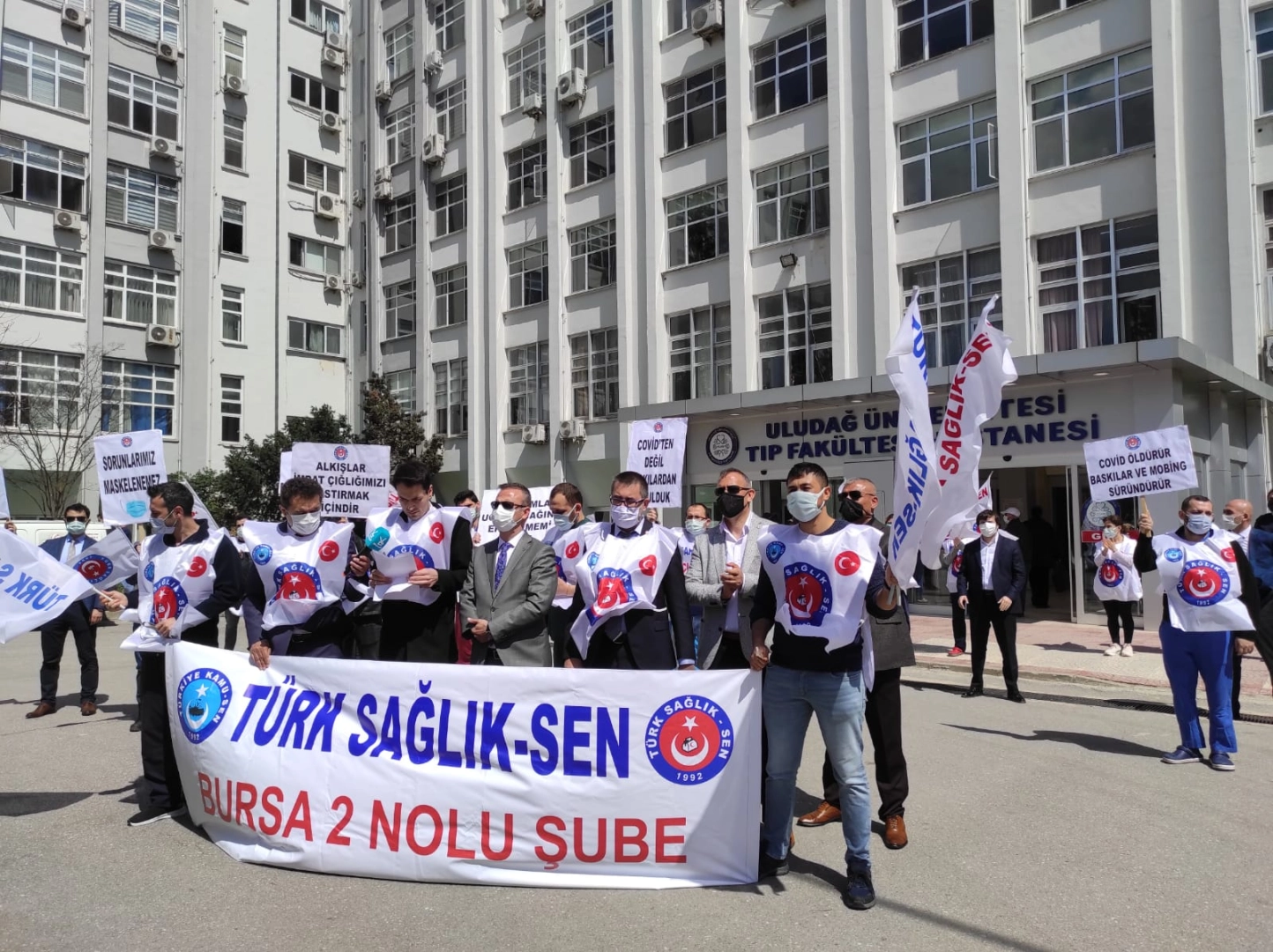 Bursa Uludağ Üniversitesi Tıp Fakültesi Hastanesi’nde yönetimin tek tip kıyafet dayatmasına karşı Türk Sağlık Sen tepki gösterdi.