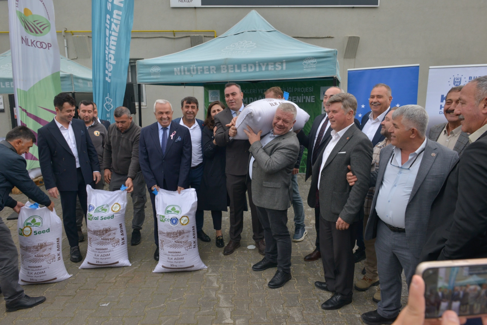 “Hayırlı ve bereketli olsun”Dağıtım töreninde konuşan Büyükşehir Belediyesi Başkanvekili Mehmet Aydın Saldız, dağıtımı yapılan çim tohumlarının üreticilere can suyu olacağını söyledi. Tarım ve hayvancılıkla uğraşan çiftçileri her zaman desteklemeye devam edeceklerini belirten Saldız, “Üreticilerimizin omuzlarındaki yükü azaltmak ve üretimi artırmak istiyoruz. Üreten Bursa, güçlü bir Bursa demektir. Proje kapsamında 3 farklı noktada yüzde 70 hibeyle 560 üreticimize toplam 14 ton İtalyan çimi tohumu dağıtıyoruz. İlçe belediyelerimizle birlikte çiftçimize yönelik projeler geliştirmeye devam edeceğiz. Bursa Büyükşehir Belediye Başkanı Mustafa Bozbey’in tek amacı var. Üretime katkı sunmak, üreticinin yanında olmak, kentimizde üretimi artırmak. Damla sulama boruları ve sıvı gübre üreterek halkımızla buluşturduk. Bu tür çalışmalar artarak devam edecek. Hayırlı ve bereketli olsun” dedi. Nilüfer Belediye Başkanı Şadi Özdemir, Mudanya Belediye Başkanı Deniz Dalgıç ve NİLKOOP Başkanı Süleyman Ayyılmaz, proje sayesinde yem maliyetlerinin düşeceğini belirterek Bursa Büyükşehir Belediye Başkanı Mustafa Bozbey ve emeği geçenlere teşekkür etti.