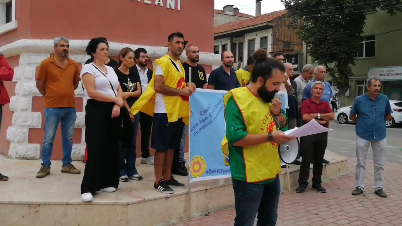 Eğitim-Sen Üyeleri Bursa'nın Yenişehir ilçesinde bulunan Saat Kulesi önünde buluştu.