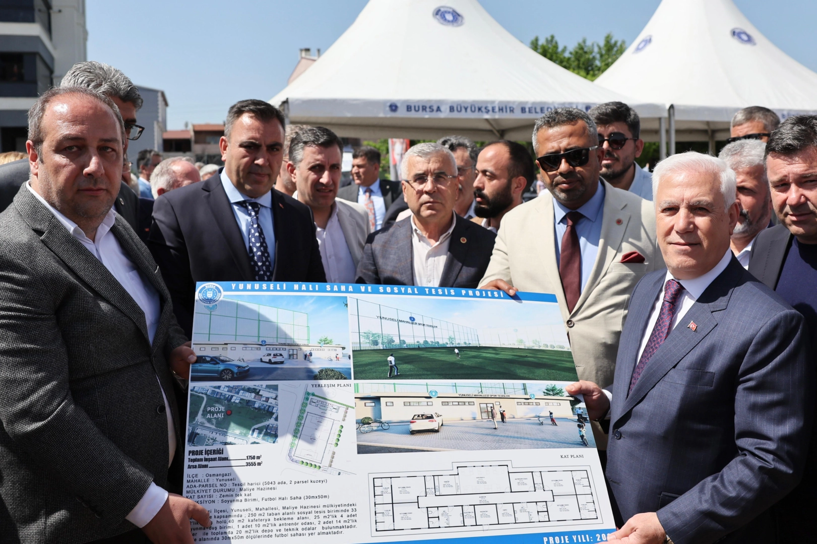 “En önemlisi çocuklar gülümseyecek”Sadece bir tesisin değil, aynı zamanda geleceğe yapılan bir yatırımın, umutların ve sağlıklı nesillerin temelini atmanın da heyecanını yaşadıklarını söyleyen Başkan Mustafa Bozbey, Yunuseli’nin hem eski yerleşim bölgesi olduğunu hem de nüfusunun yoğun biçimde arttığını belirterek önümüzdeki günlerde yeni kültürel tesislerin temellerini atacaklarını dile getirdi. Halkın oturduğu bölgede mutlu, huzurlu ve geleceğe güvenle bakabilmesi için hizmetlerini sürdürdüklerini ifade eden Başkan Bozbey, “Bu süreç, muhtarımızın talebiyle başlamıştı. Söz verdik. ‘Yer bulalım önce’ dedik. Daha sonra Ramazan ayında gençler toplanarak ‘Spor tesisi ne zaman olacak?’ diye sordular. Bizler de ‘Merak etmeyin gençler. Biz sözümüzü verdik. İnşallah yeri de temin ettiğimizde çalışmalara başlayacağız’ dedik. İşte bugün ‘Bismillah’ diyoruz. Kısa sürede bitirilecek ve mahallemize teslim edilecek. Gençlerimiz burada sadece arkadaşlarıyla değil, aileleriyle birlikte buraya gelecek. Hem güzel zaman geçirecekler hem de kötü alışkanlıklardan uzak durmuş olacaklar. En önemlisi çocuklar gülümseyecek. Bütün çabamız bu yönde. Birçok yerde düşündüğümüz bu tesisleri yaşama geçirdiğimizde Bursa, sporun da başkenti olacaktır” dedi.