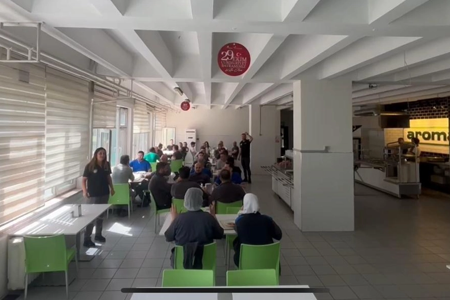 Aroma fabrikasında örgütlü bulunan Tek Gıda İş sendikasının işçilerden habersiz imzaladığı sözleşmeye işçiler tepki gösterdi. Yemekhanede bir araya gelen işçiler, 'Direne direne kazanacağız' sloganı atarak sendikayı protesto etti.