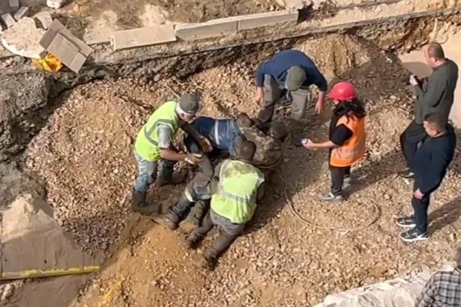 Bursa'nın İnegöl ilçesinde altyapı çalışmaları sırasında göçük sonucu toprak altında kalan bir işçi ağır yaralandı.