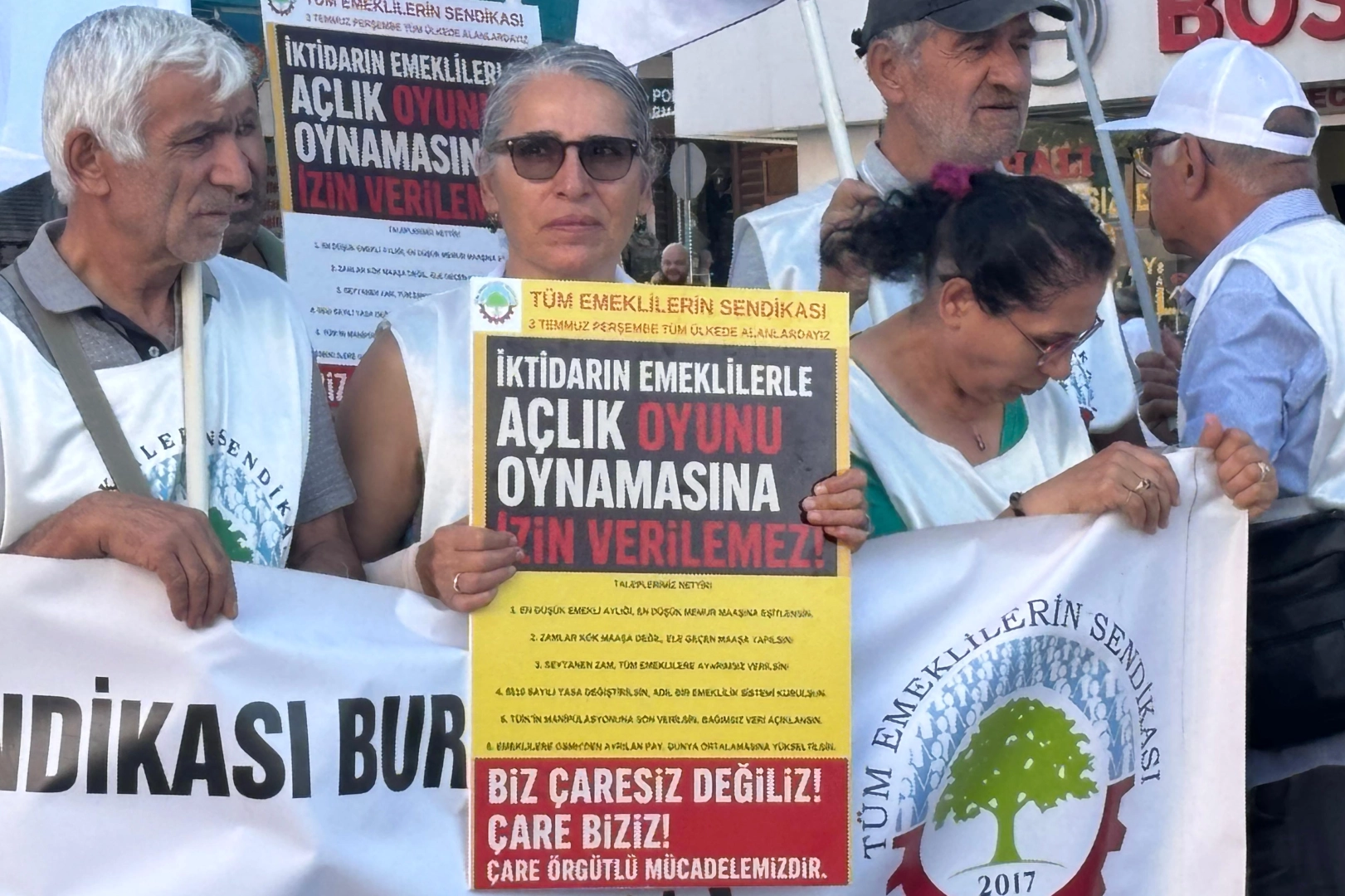 Fomara Meydanı'nda yapılan açıklamayı Tüm Emeklilerin Sendikası Bursa Şube Başkanı Gülçin Ayyılmaz okudu.
