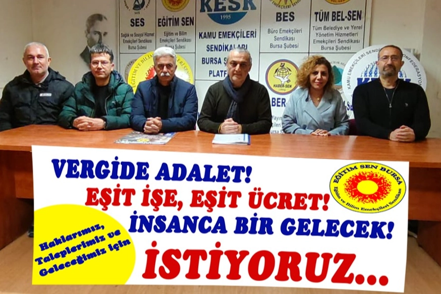 Eğitim Sen Bursa Şubesi, sendika binasında yazılı bir açıklama yaptı. Yapılan açıklamada, "Haklarımız, Taleplerimiz ve Geleceğimiz İçin Eğitim Sen’de Buluşalım" kampanyasını duyurdu.