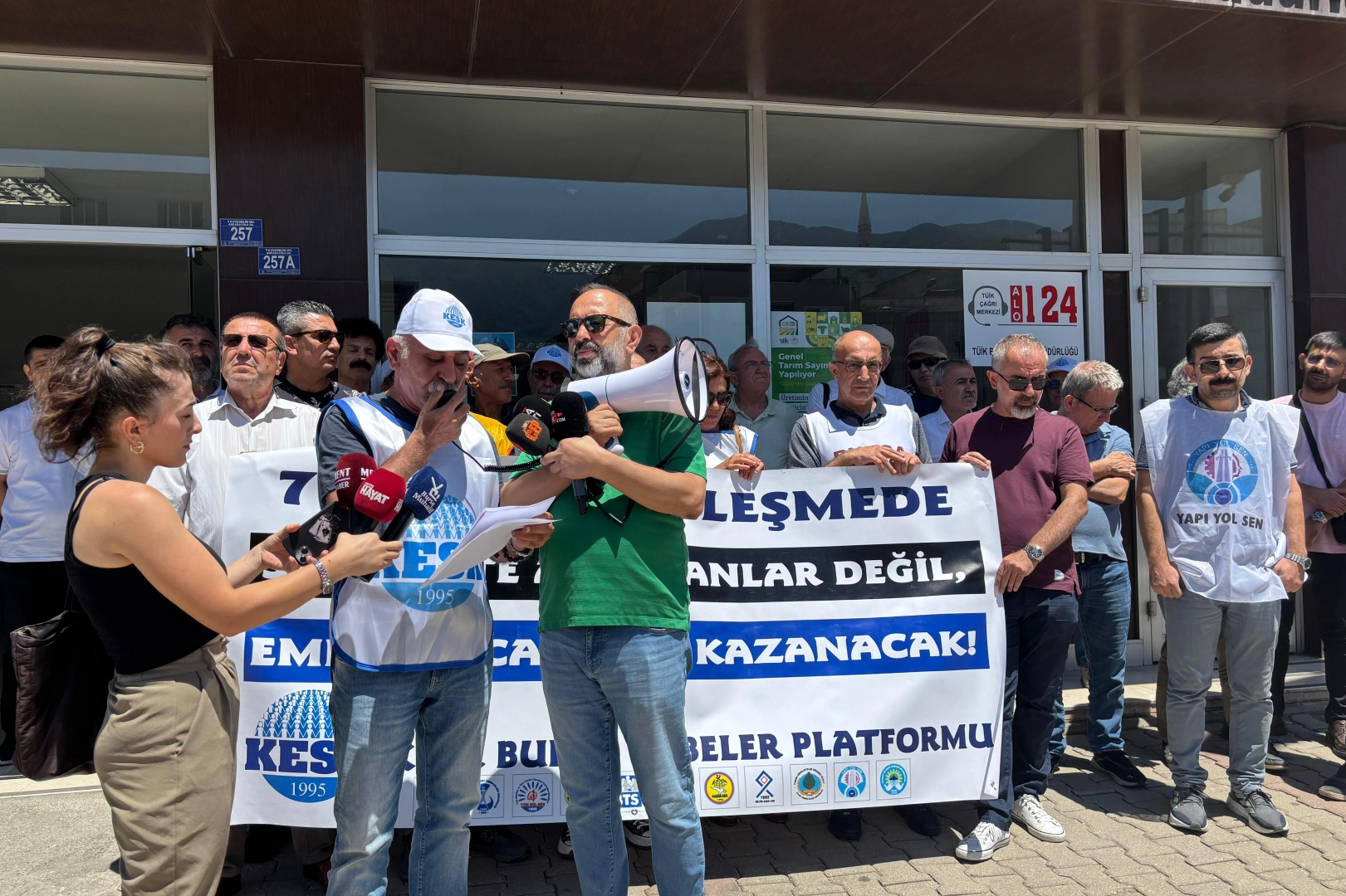 TÜİK Bölge Müdürlüğü önünde bir araya gelen KESK üyeleri TÜİK'İn açıkladığı enflasyon verilerini protesto etti. Yapılan açıklamayı KESK Dönem Sözcüsü Okan Okumuş okudu.