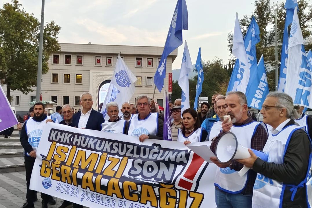 Kamu Emekçileri Sendikaları Konfederasyonu (KESK) Bursa Şubeler Platformu, Fomara Meydanı'nda yaptığı basın açıklamasıyla KHK ile ihraç edilen kamu emekçilerinin görevlerine dönmesini talep etti. Açıklamaya CHP Bursa Milletvekili Kayıhan Pala da destek verdi.