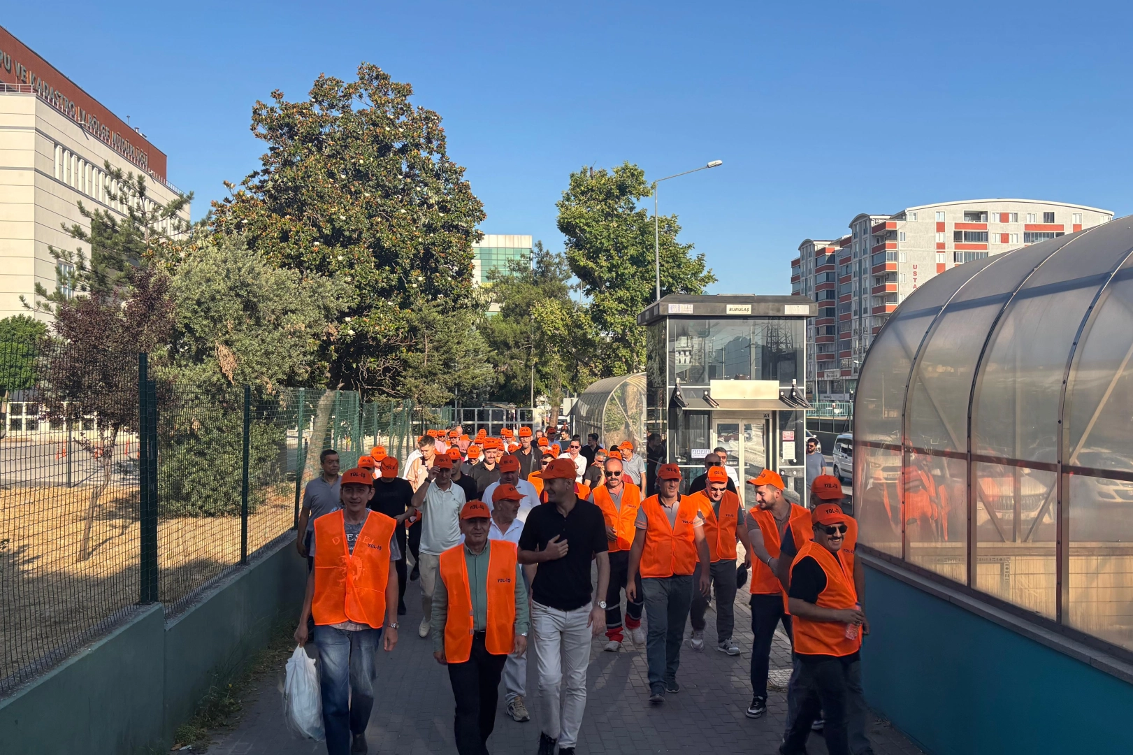 İş yerine 500 metre uzaklıkta bir araya gelen karayolu işçileri alkış ve ıslıklarla bölge müdürlüğüne yürüdü. Bölge müdürlüğünde yapılan açıklamayı Yol-İş Bursa 1 No’lu Şube Başkanı Muharrem Yıldız okudu.