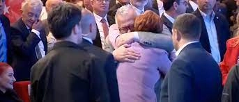 İYİ Parti Genel Başkanı Meral Akşener'in Rumeli Türkleri'nin yaşadığı acıları anlatan konuşmasından sonra Celal Şengör, Meral Akşener'e sarılıp ağladı.